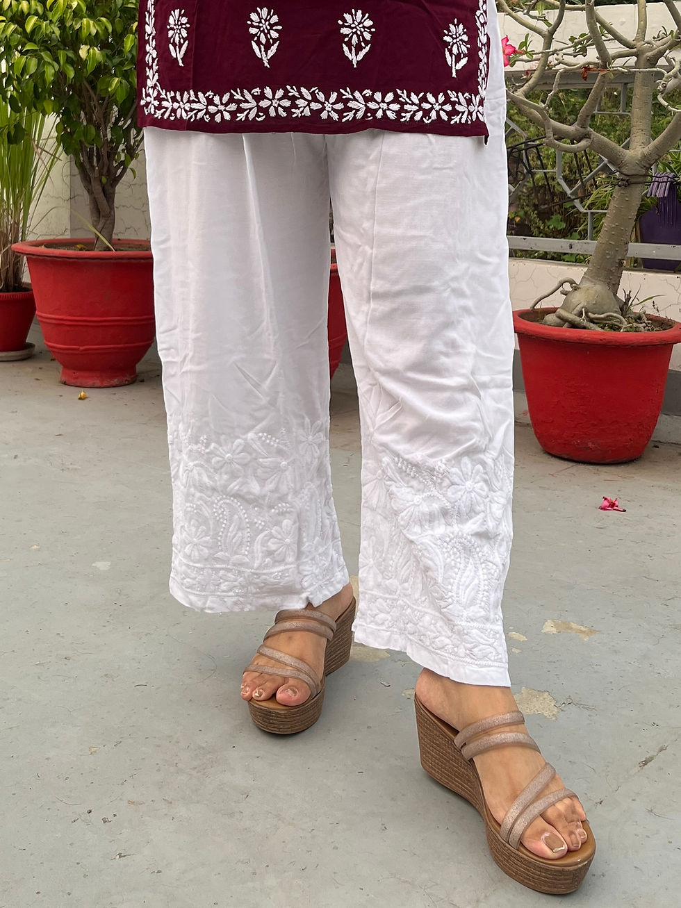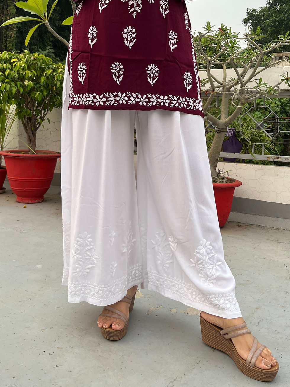 White Multi-colour Resham 🌸Chiffon Chikankari Saree